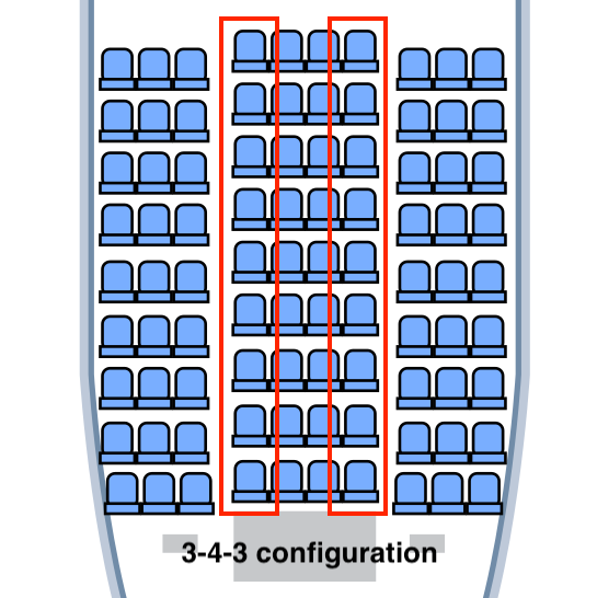 Generally, a long-haul flight will probably be on a plane offering a 3-4-3 configuration (see left image below). Others have said this before, but the right answer of ‘which seat to pick’ will be the aisle seat in the middle section.